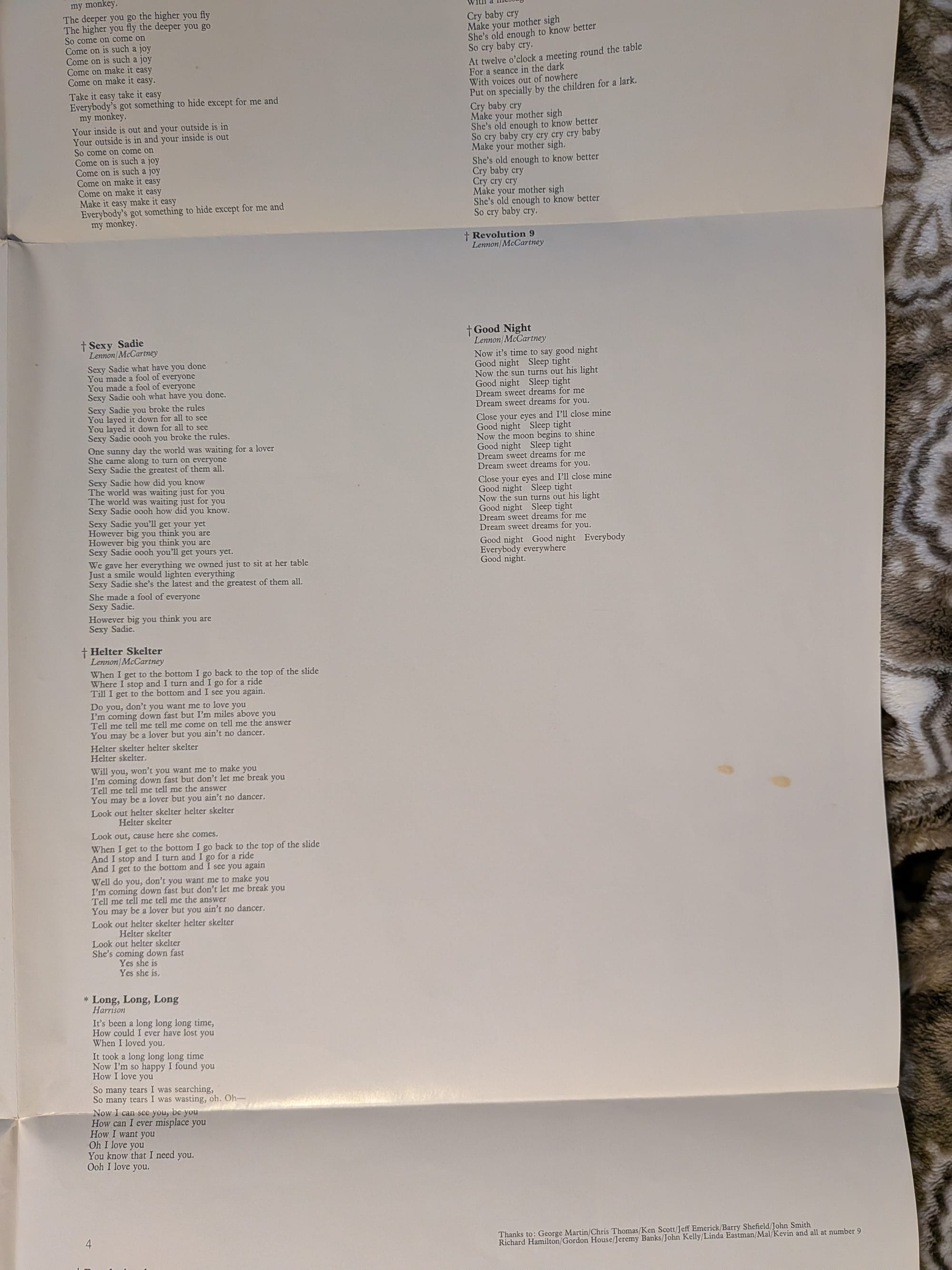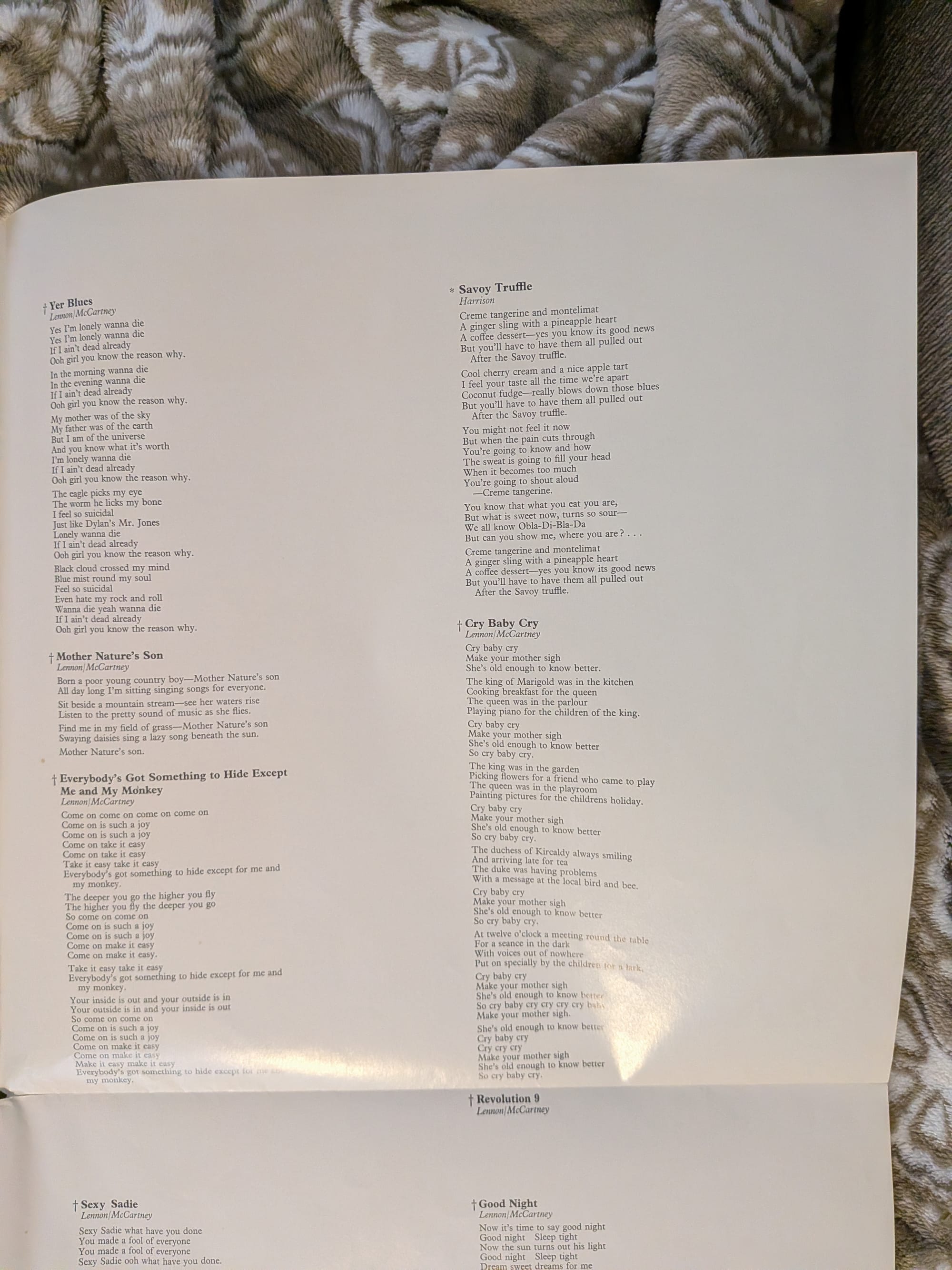 Last night while laying in bed unable to sleep, I got it in my head to play this album today. I haven't listened to it in a long time. My go-to Beatles album is and has always been Magical Mystery Tour, almost to the exclusion of anything else (yes, even that "Peppers" album). So here we are, and it's great. I've always been a little down on their later period, but I think I'm finally warming up to it in my old age.