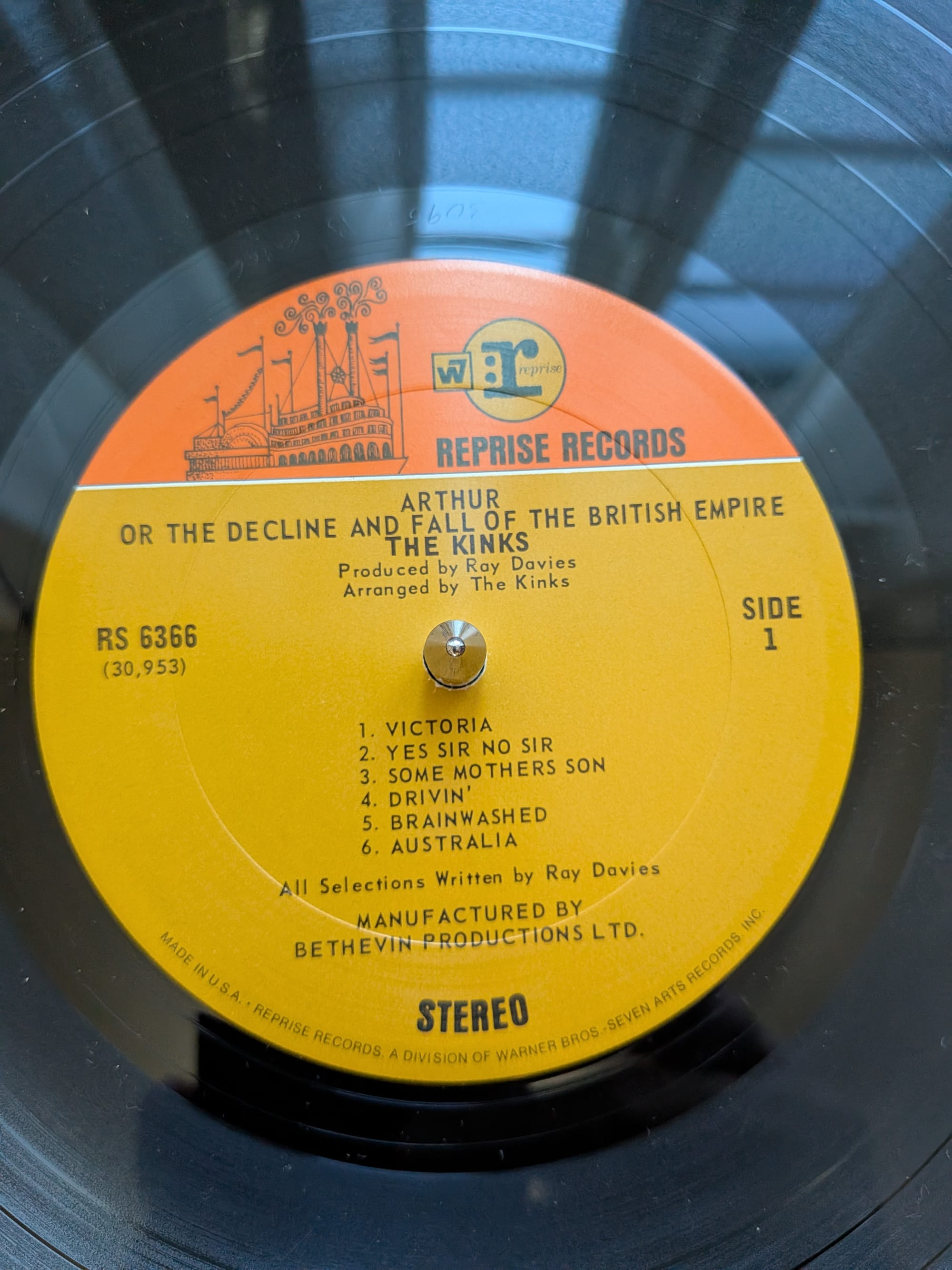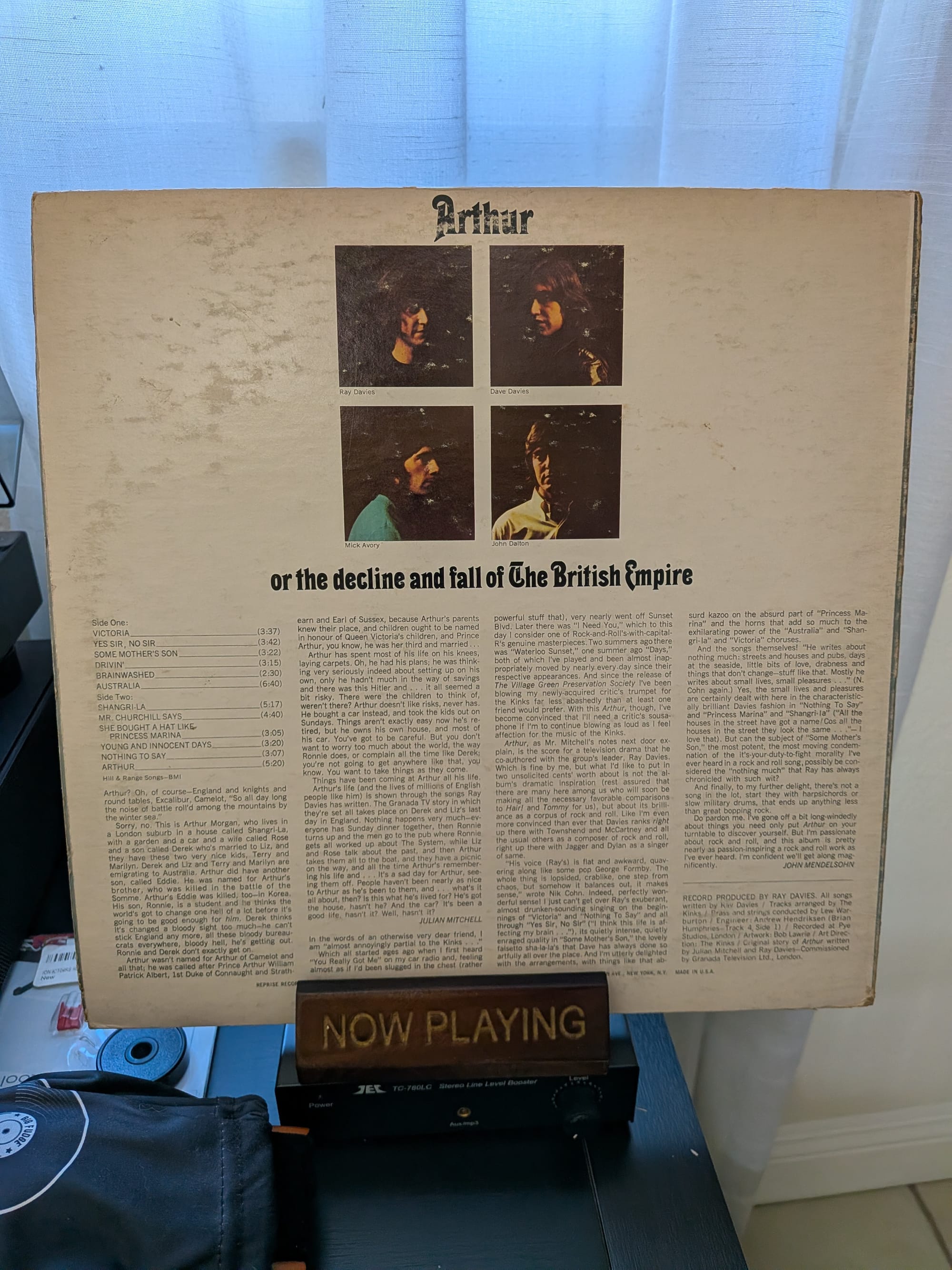 I've always been a big fan of The Kinks, but I've never owned an album by them- until now. My favorite Kinks album, in fact: "Arthur (Or The Decline And Fall Of The British Empire)". I thought $19.95 was a little steep, considering the cover is not in the best condition. The album itself, however, is in great condition- not a skip so far. I'm glad I did. And besides- I always love giving Folk Arts Rare Records my hardly earned money. They're the best!