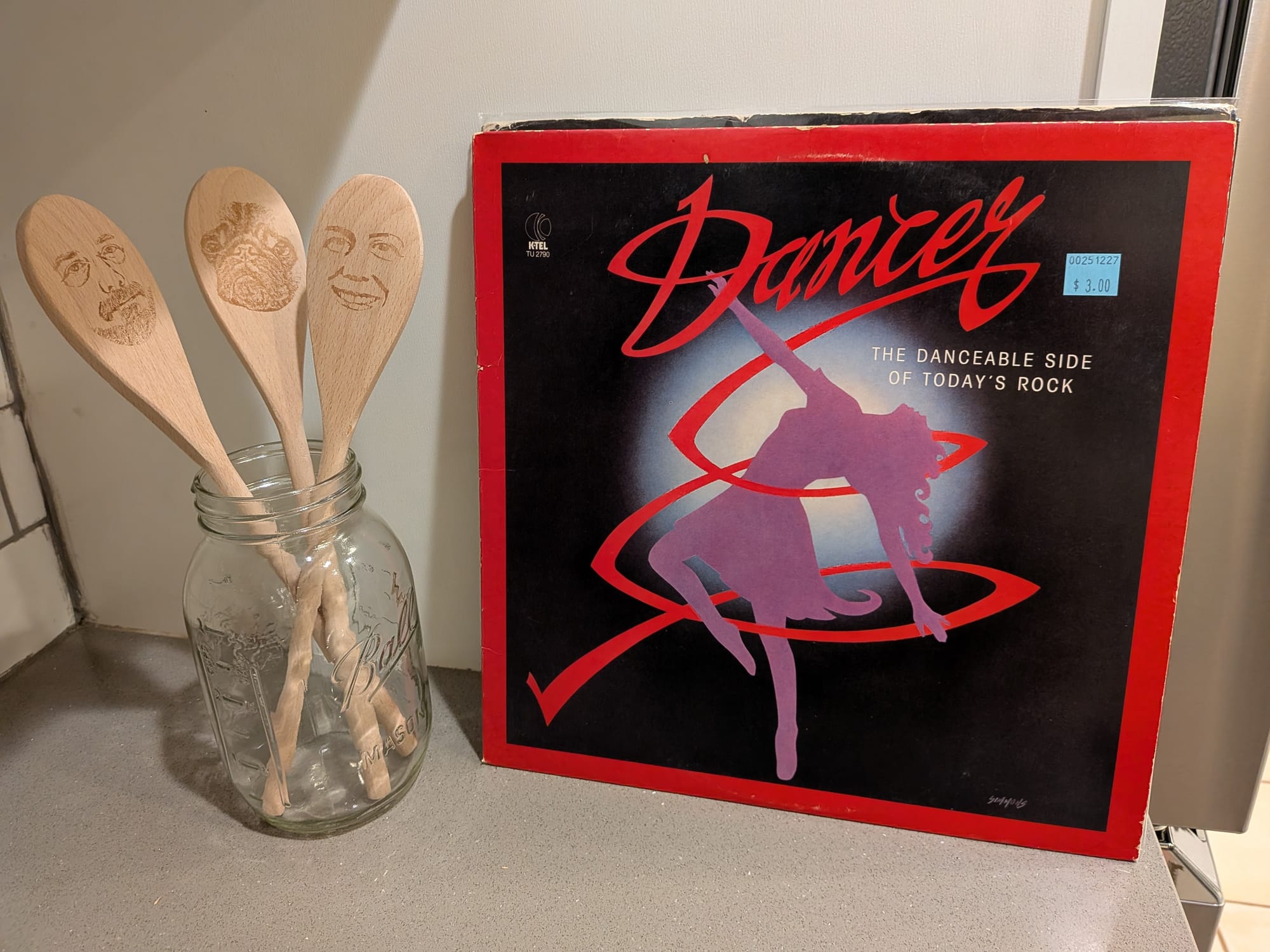 The cover K-Tel collection "Dancer: The Danceable Side of Today's Rock" jumped out at me in the Digger's Den. I have vivid memories of this album from the early 80s, which was my older sisters, mostly for its inclusion of Lipps, Inc.'s "Funkytown" and Frankie Smith's "Double Dutch Bus". Nothing on here that you couldn't find or stream easily anywhere, but for $3 it was a steal for the nostalgia trip alone. When I got home, I immediately messaged my sister about it, and she totally remembered it as well, but not the songs on it. A testament to the power of that amazing cover art. I wonder how many other pop-culture-shellshocked Gen Xers like us would have the same visceral reaction to it...