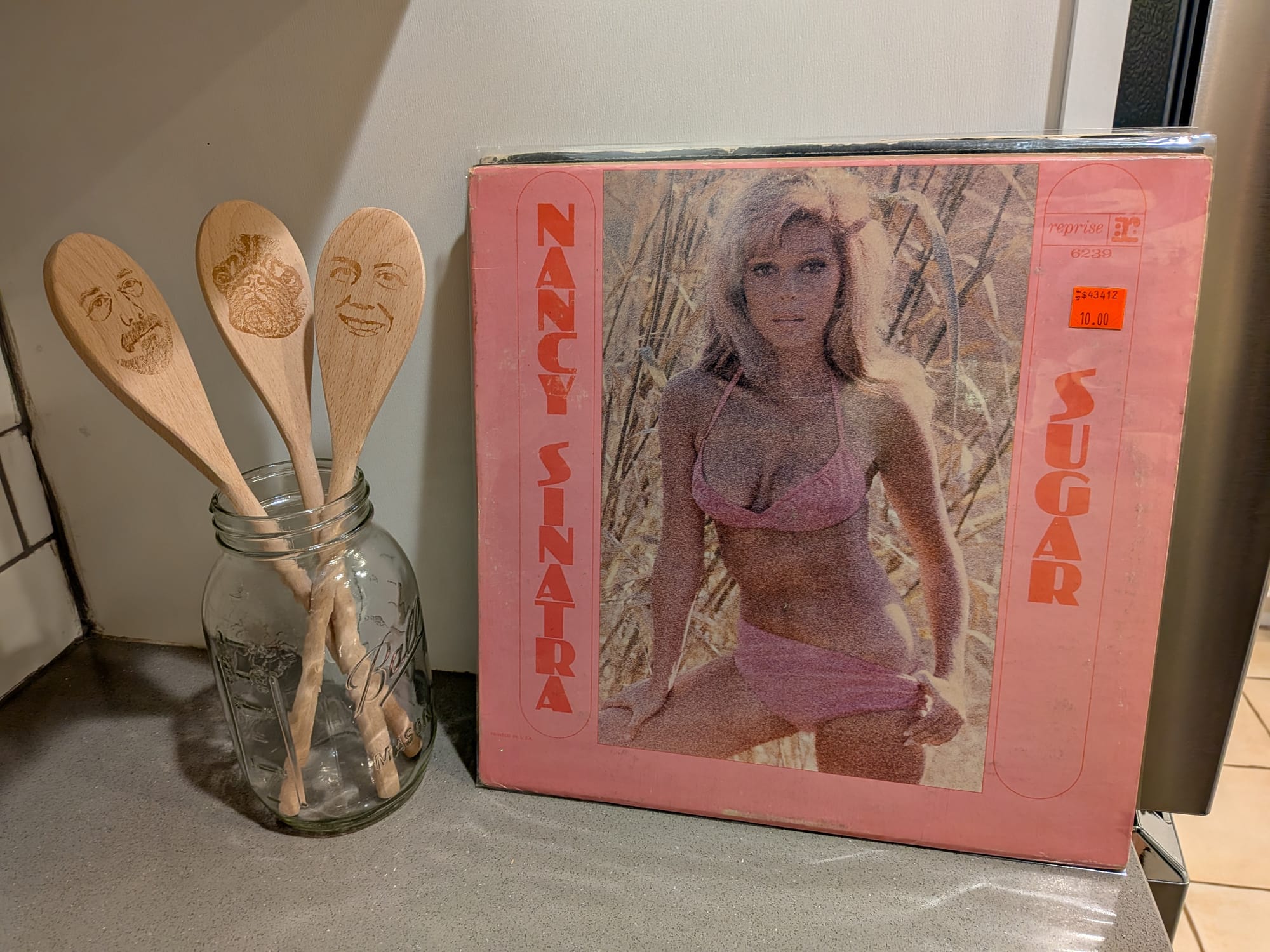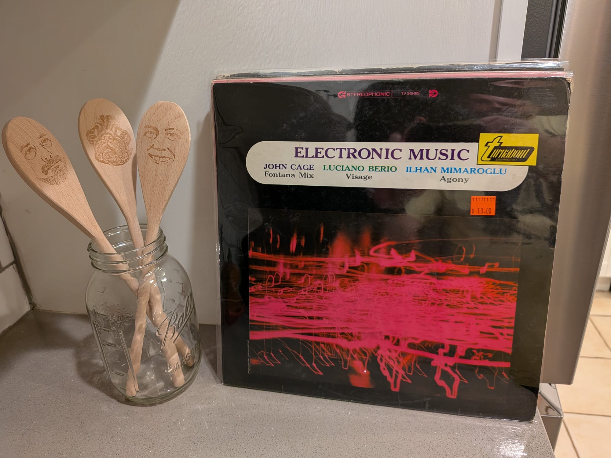 After Vinyl Junkies, we capped off the trip with a visit to The Reverie Room. I was preparing to again, like last time, find some pricey must-have that would break my "budget". Instead I found 3 must-haves for about $10 each. Nancy Sinatra's "Sugar" to add to my growing fixation with her collabs with Lee Hazelwood. A Professor Longhair album, another artist I loved and listened to so much to growing up, but never owned a proper album by (until now). And finally an old album of early electronic music with John Cage and other artists. I mean "early electronic" and "John Cage"? How can I not.
